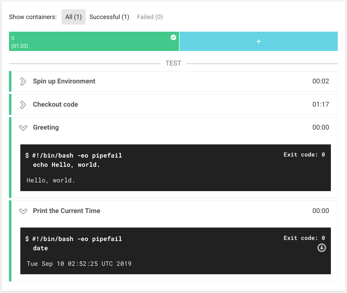 Clicking through the check information in GitHub links us back to our CircleCI job page: