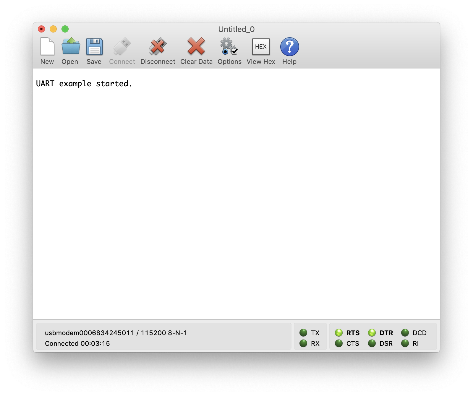 Now the nRF52840 development kit should be flashed with the UART example and it should be running properly.
