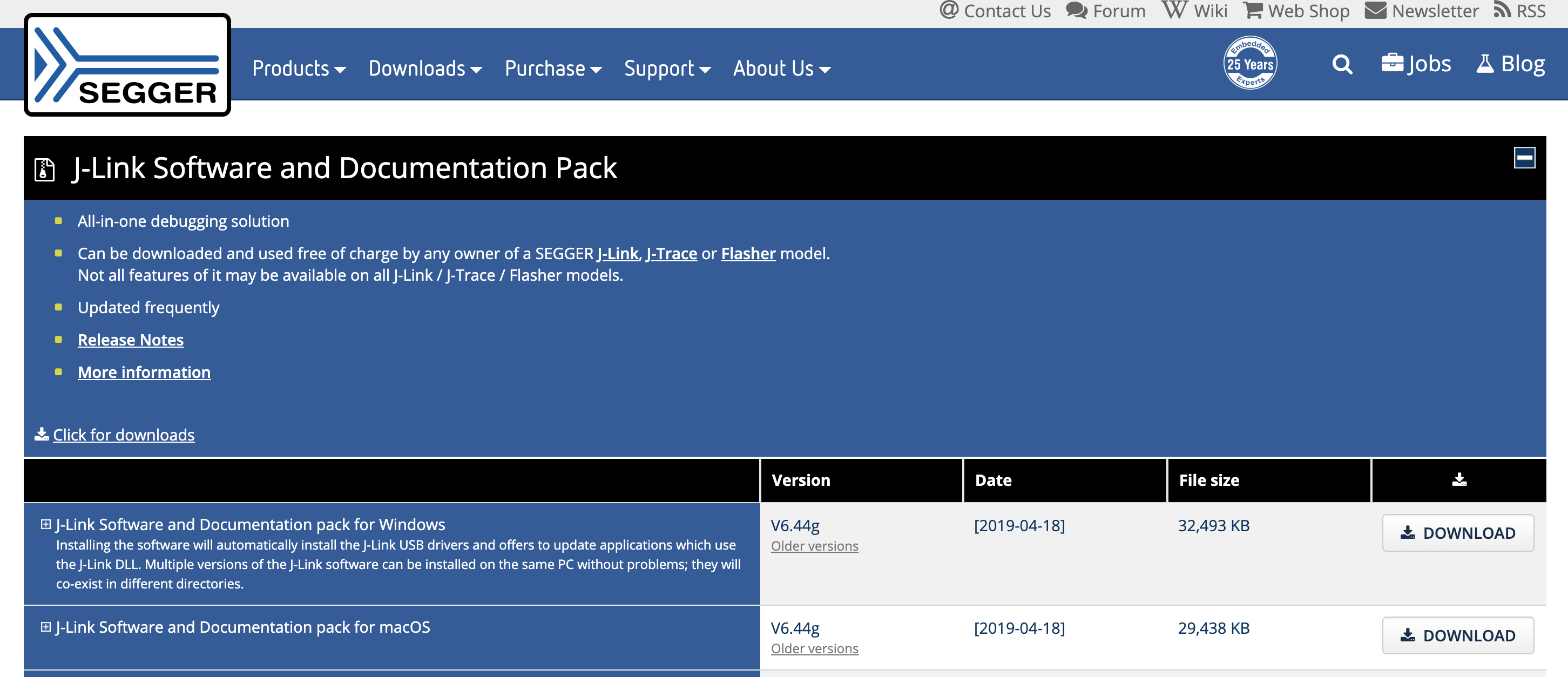 - SEGGER J-Link Software for macOS (we’ll be using version V6.44g).