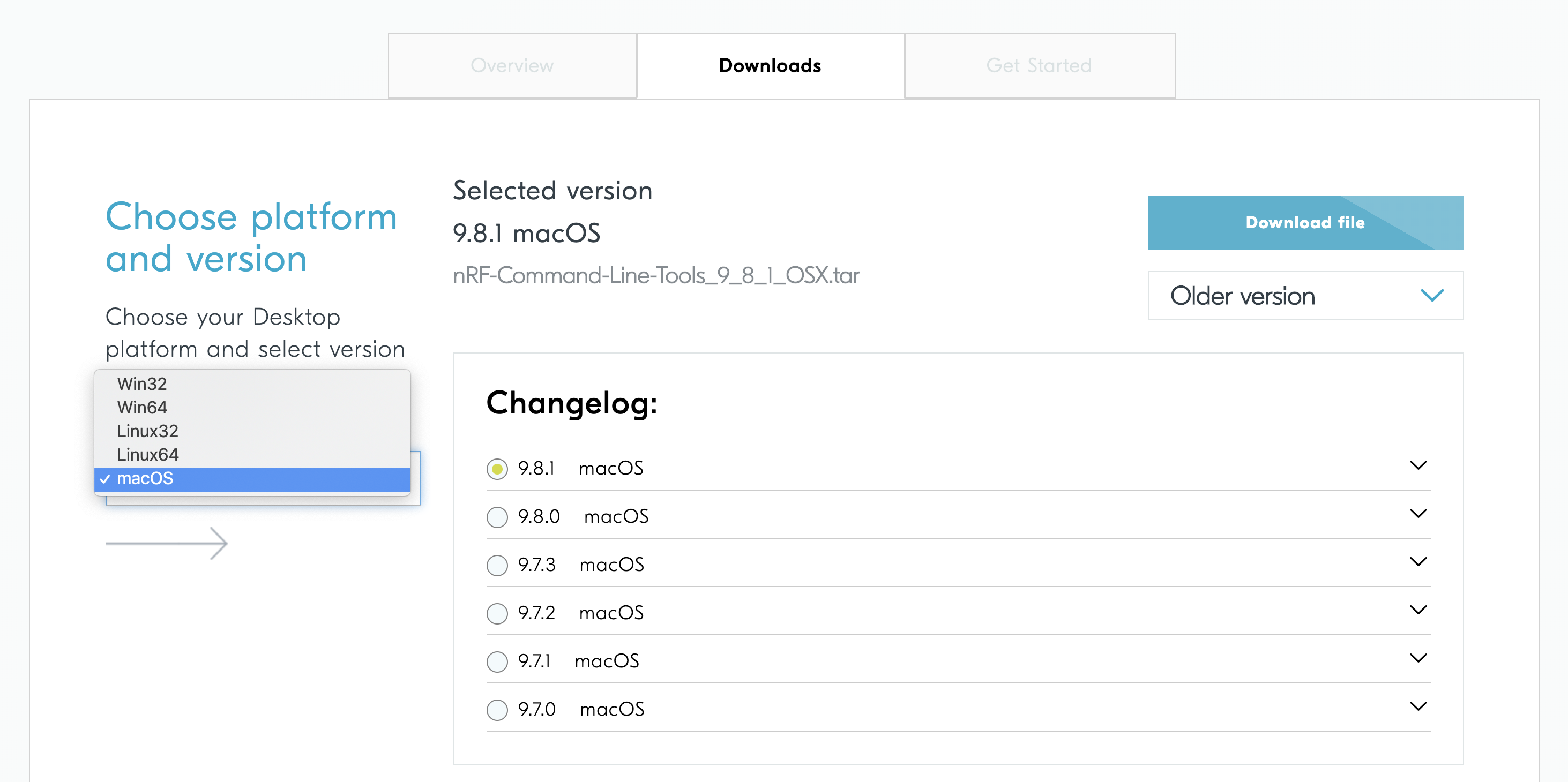 - Nordic Semiconductor’s nRF5 Command Line Tools for macOS (we’ll be using version 9.8.1).