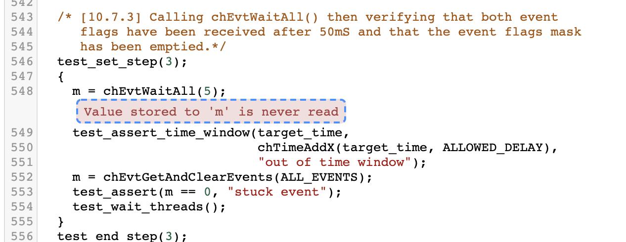 The following code would emit a “dead store” error without the comment. The syntax of the comment is as follow: